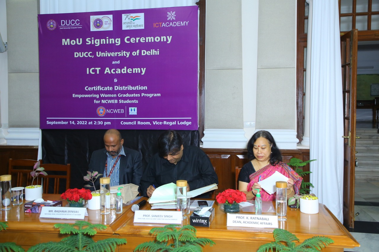 MOU Signing and Certificate Distribution of Skill Course undertaken by NCWEB students of Delhi University (September 14, 2022)